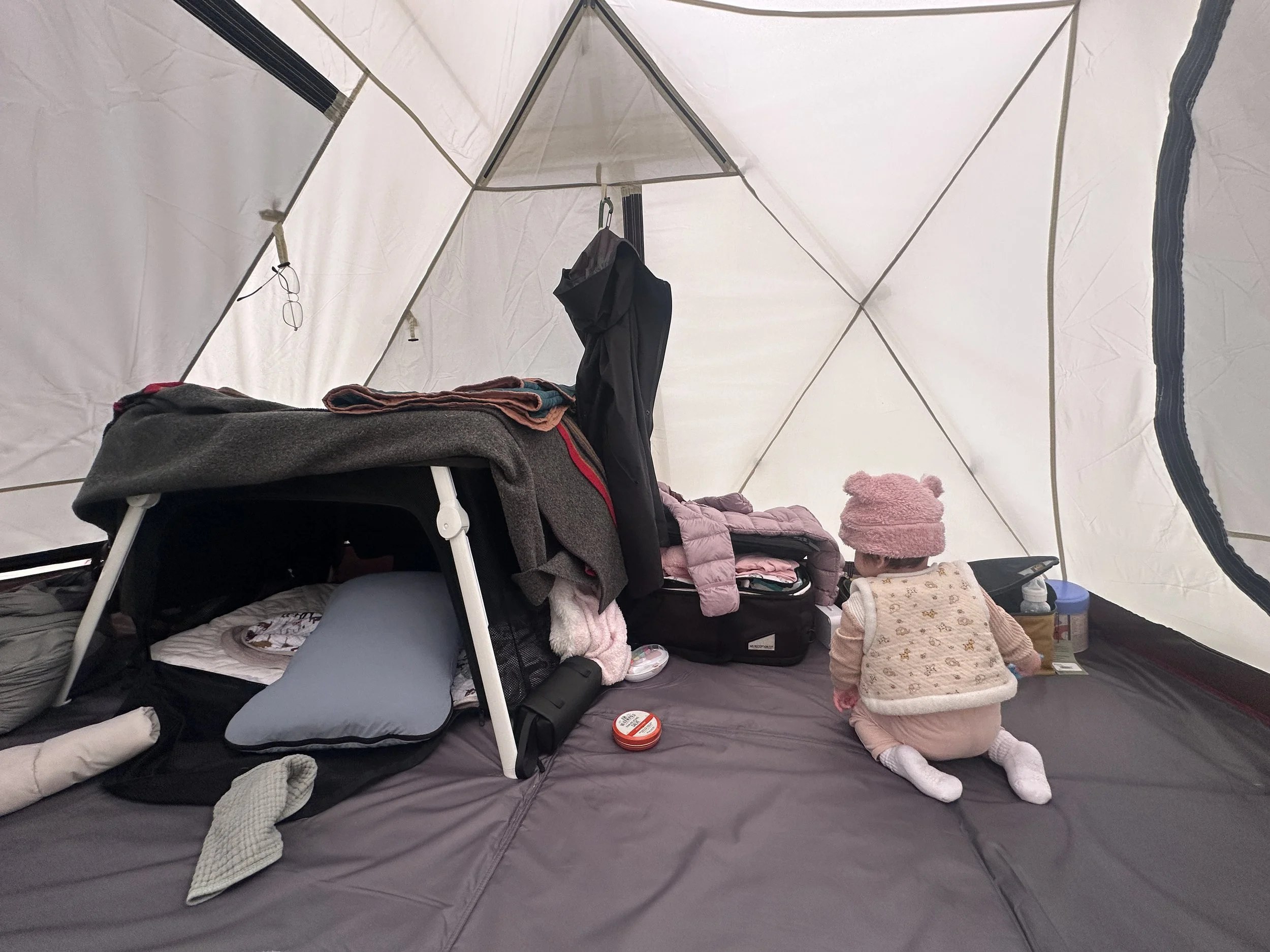 Given this was our first time camping since having Isla, I would say it went very well. She skipped one of her afternoon naps, which ended up being fine! It was too stuffy in the tent and probably too bright. The list will probably change over time as she grows and we need more or less of certain things.